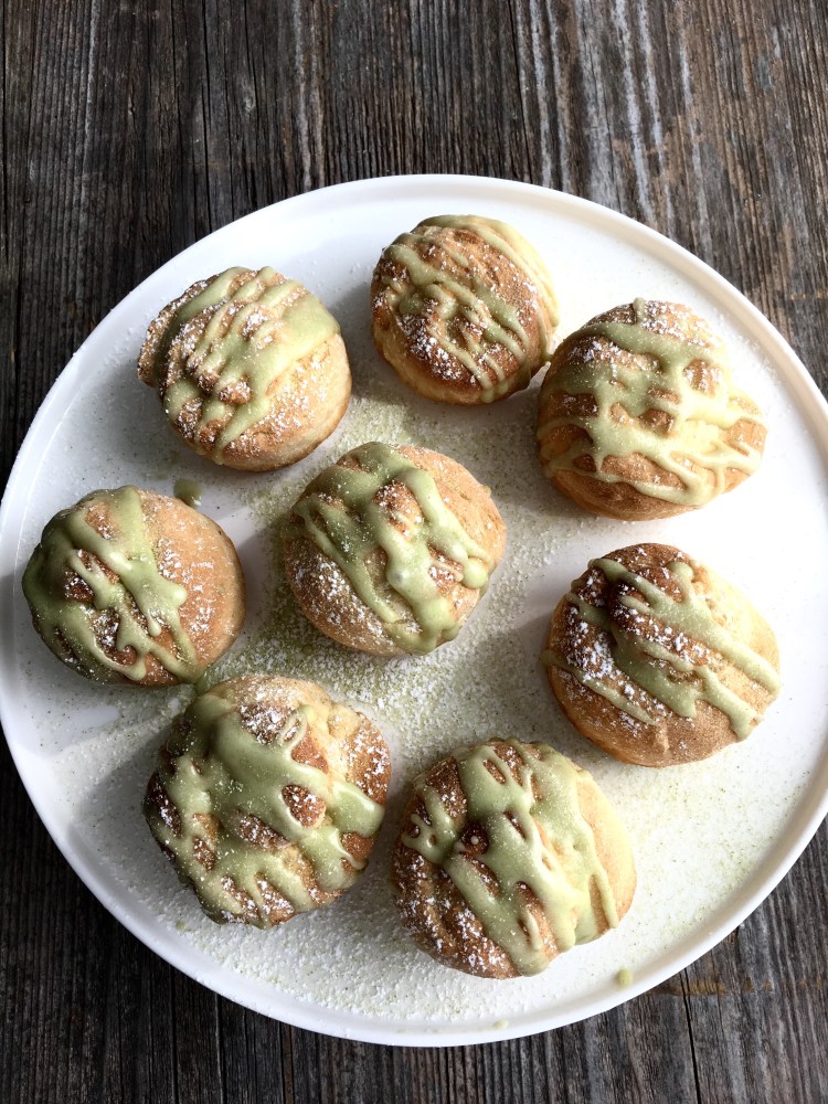 Sfornate e fate raffreddare su una gratella. In una tazza mettete lo zucchero a velo con il the Matcha e qualche goccia di acqua, mescolate velocemente e se vedete che non è morbido e quasi fluido aggiungete ancora una goccia di acqua. Pochissima, mi raccomando! Vedrete come fa presto.