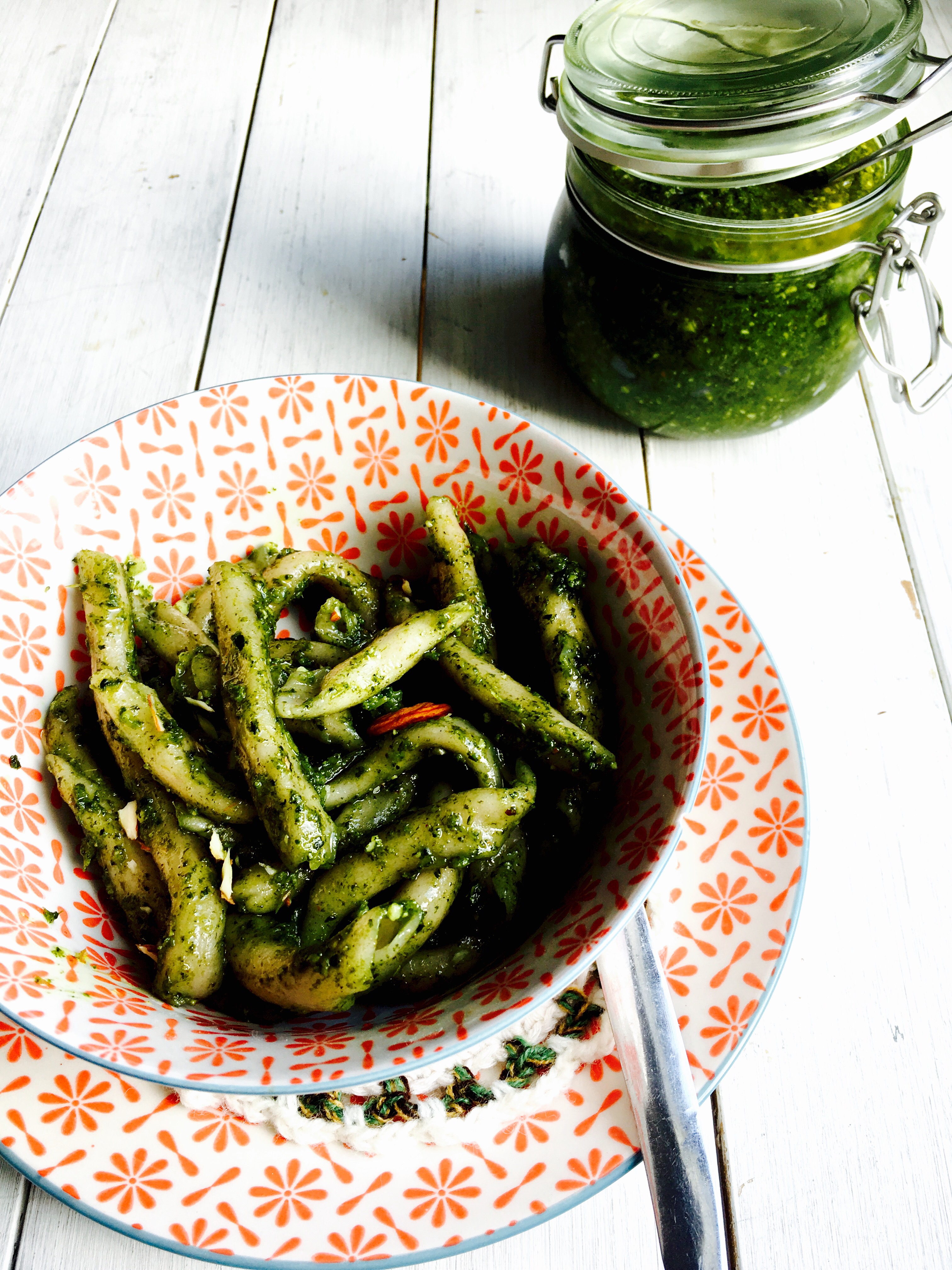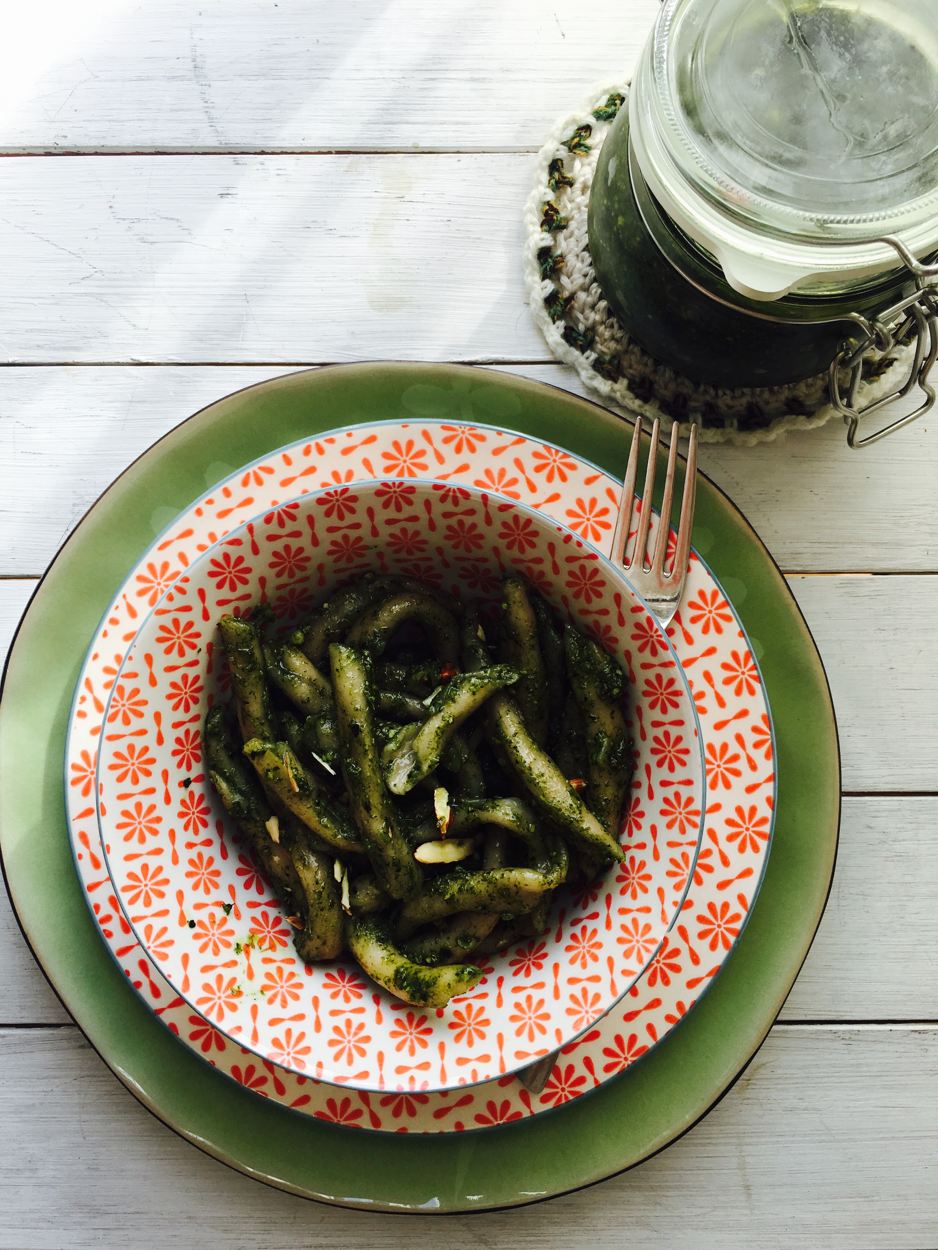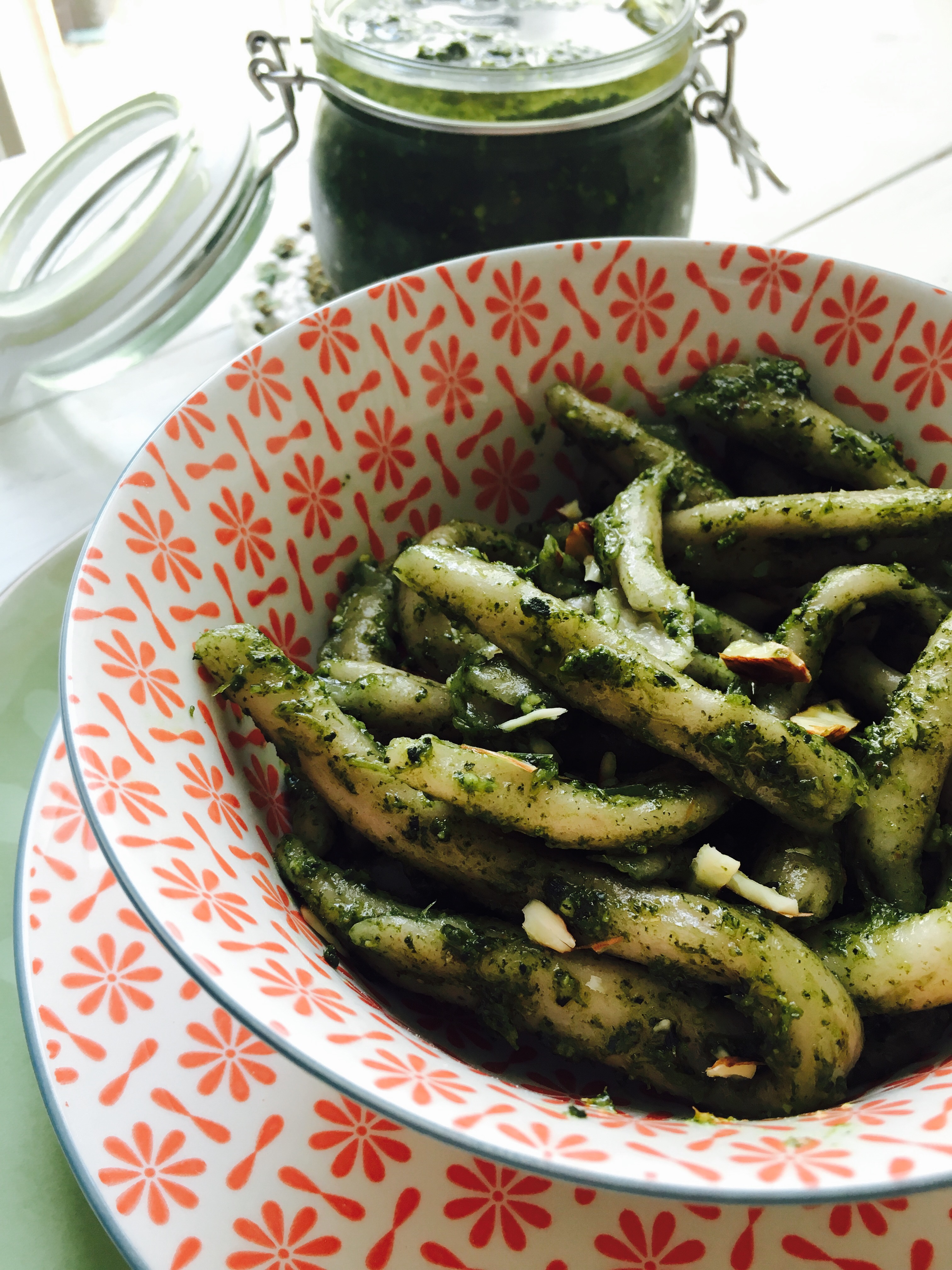 Sciogliete il lievito nell’acqua e aggiungete un pochino di miele. Appena fa un pochino di schiuma aggiungetelo alla farina impastando bene. In una tazza sciogliete il the Matcha con il latte di mandorla poi versatelo nell’impasto, aggiungete il resto del miele, il burro ed impastare bene.