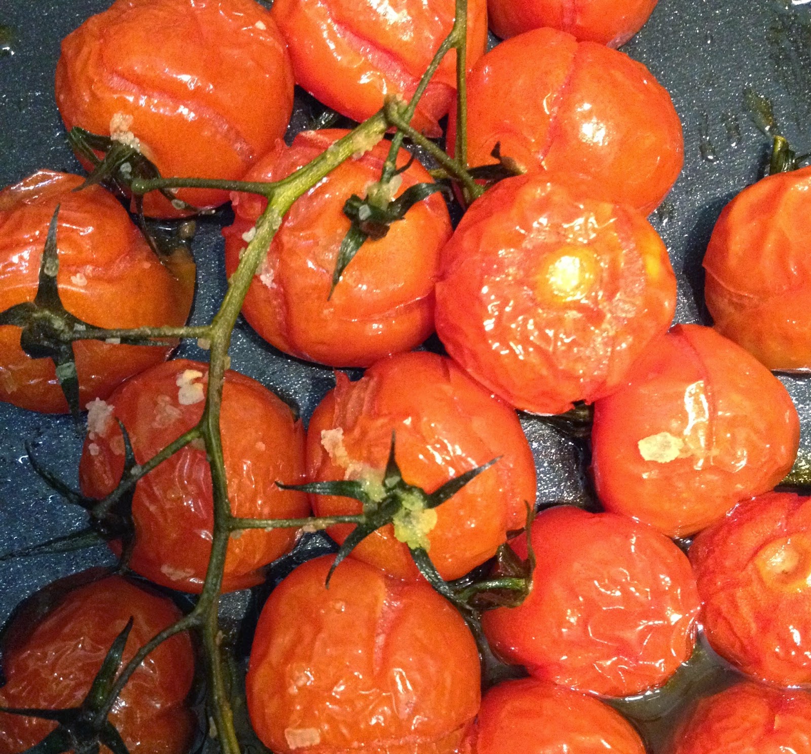 Schiacciate i pomodorini e se volete lasciate la buccia.
