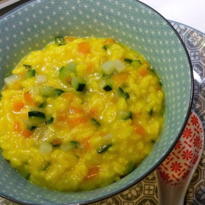 Questo semplice risotto è un classico e molto semplice a dire il vero, ha qualche nota acidula data dallo yogurt greco e i pezzetti di verdura sono fatti molto fini.