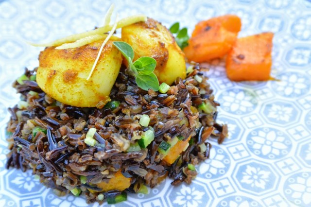 Capesante al curry su riso selvaggio del Canada