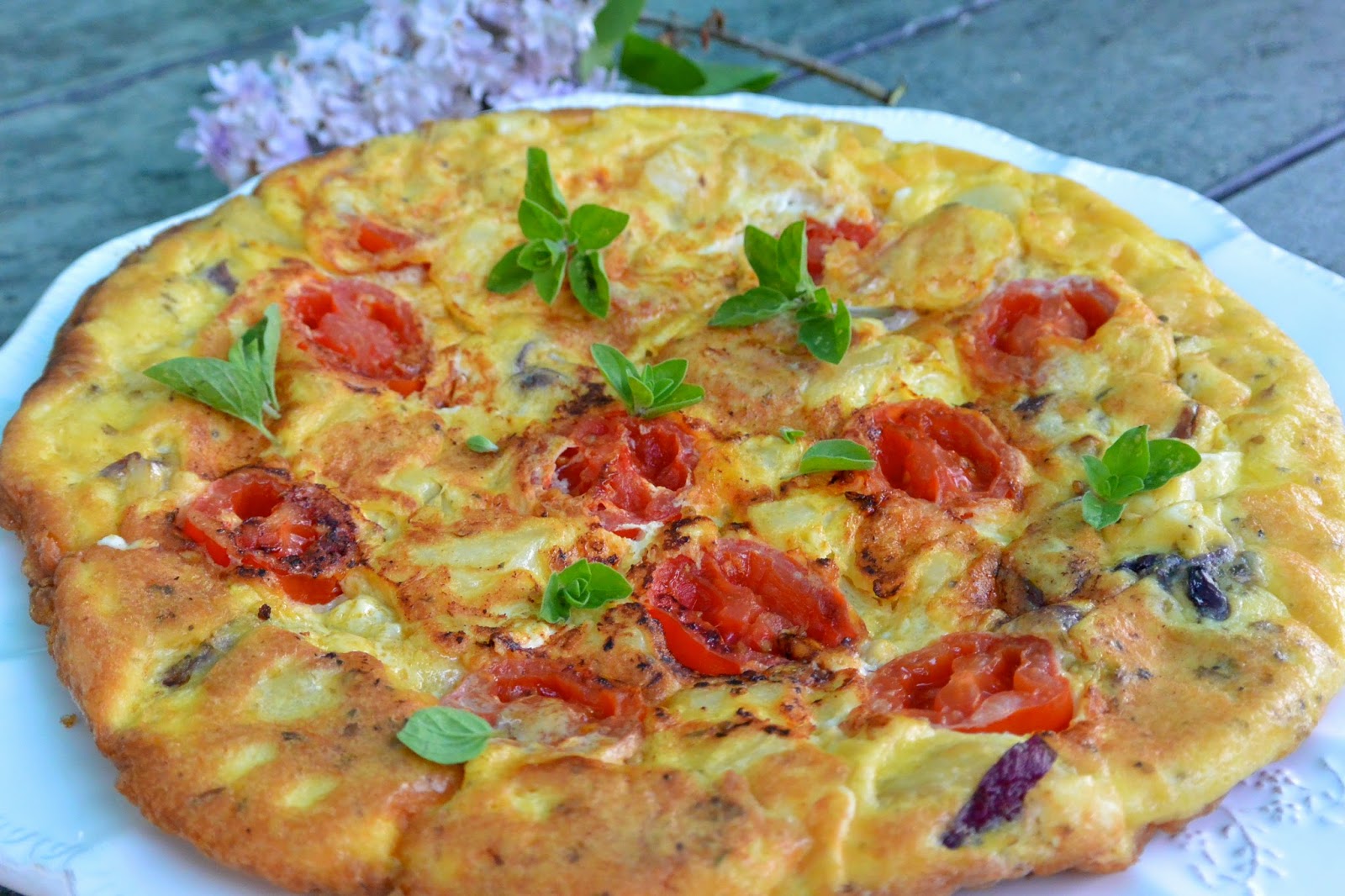 La frittata di oggi, dicevo, incontra sapori classici, patata e pomodoro, ma con un tocco di Mediterraneo, ho messo feta e origano fresco. Che profumo! Da rifare quanto prima.