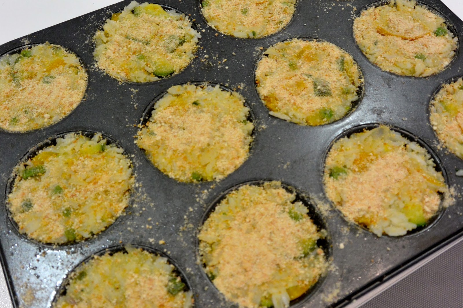 Avete presente gli arancini di riso? Quelle frittelle tipiche siciliane, fatte di riso, farcite con ragù o verdure e poi impanate e fritte? Si può dire che questa è una versione molto più leggera e soprattutto meno laboriosa ma che alla fine piace un po’ come gli arancini, a tutti.