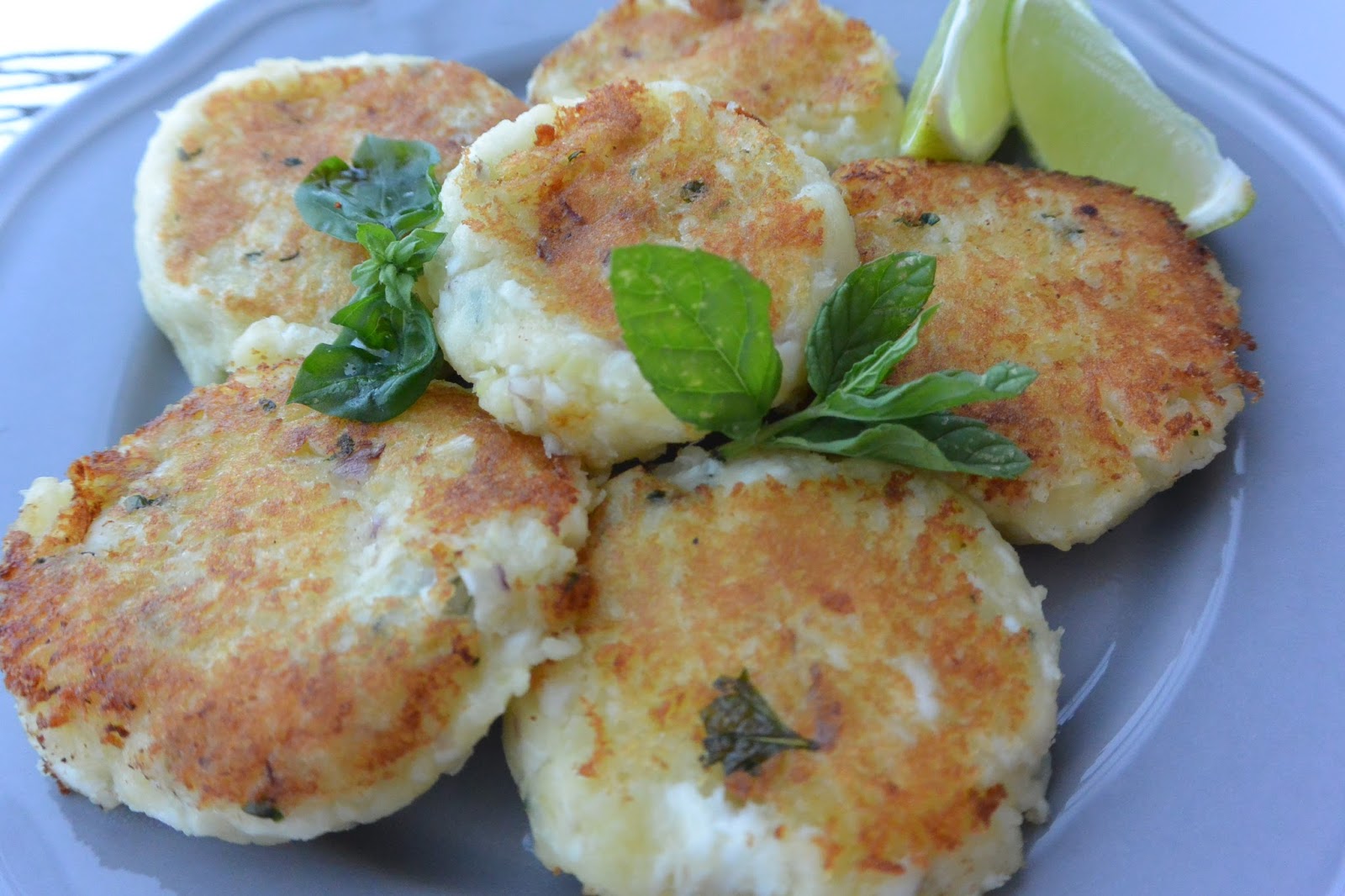 Amalgamate bene e poi aggiungete un cucchiaio di fecola e procedete con le mani a formare le fishcake. Formate delle palline, poi schiacciatele delicatamente, passatele nella fecola e fatele cuocere in padella calda dove avrete messo una noce di burro.