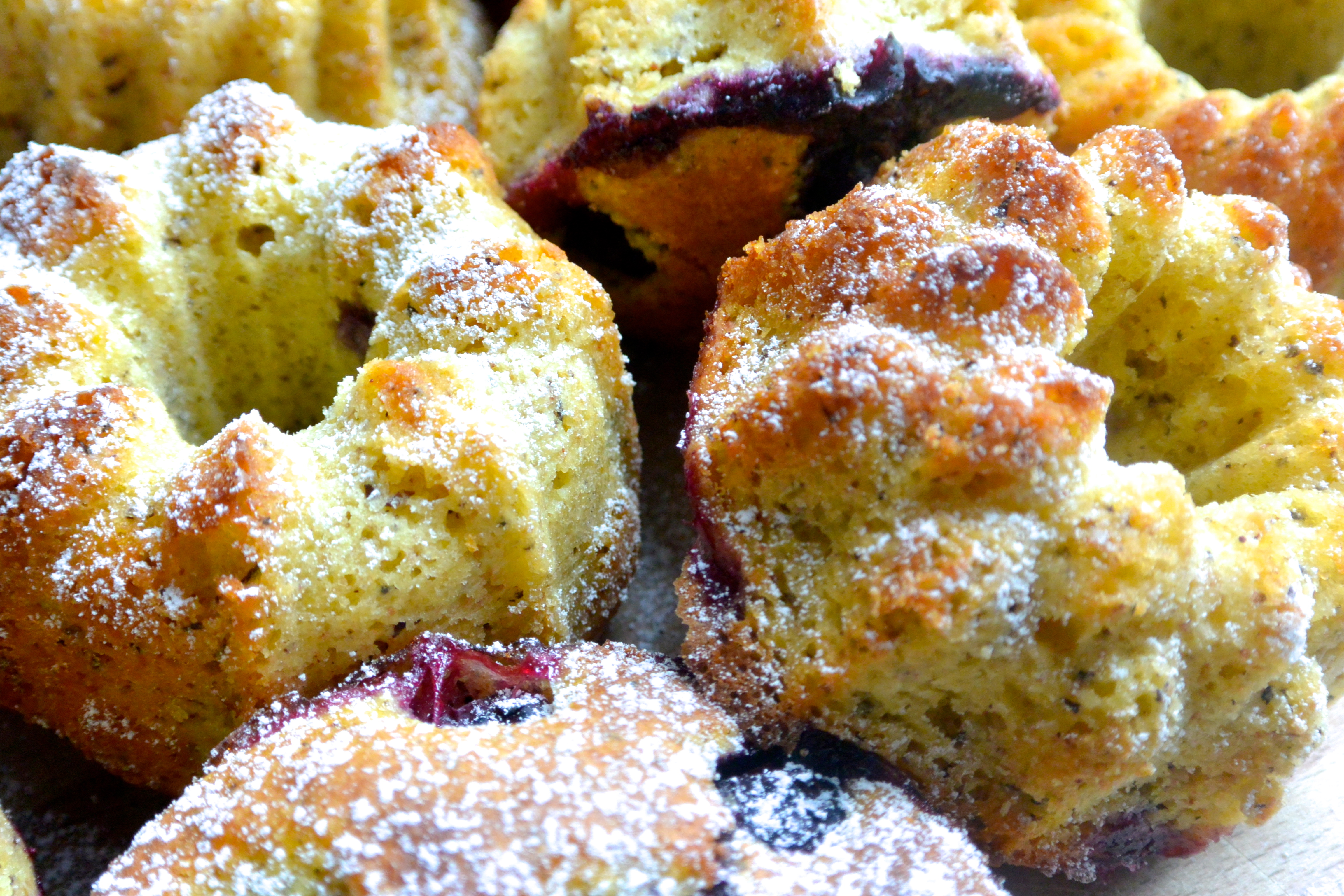 Io ho usato stampi in silicone (che ho imburrato ed infarinato), ho messo il composto dentro gli stampini e decorato con mirtilli freschi lavati ed asciugati. Se preferite potete mettere i mirtilli direttamente nell’impasto e dare un’ultima mescolata.