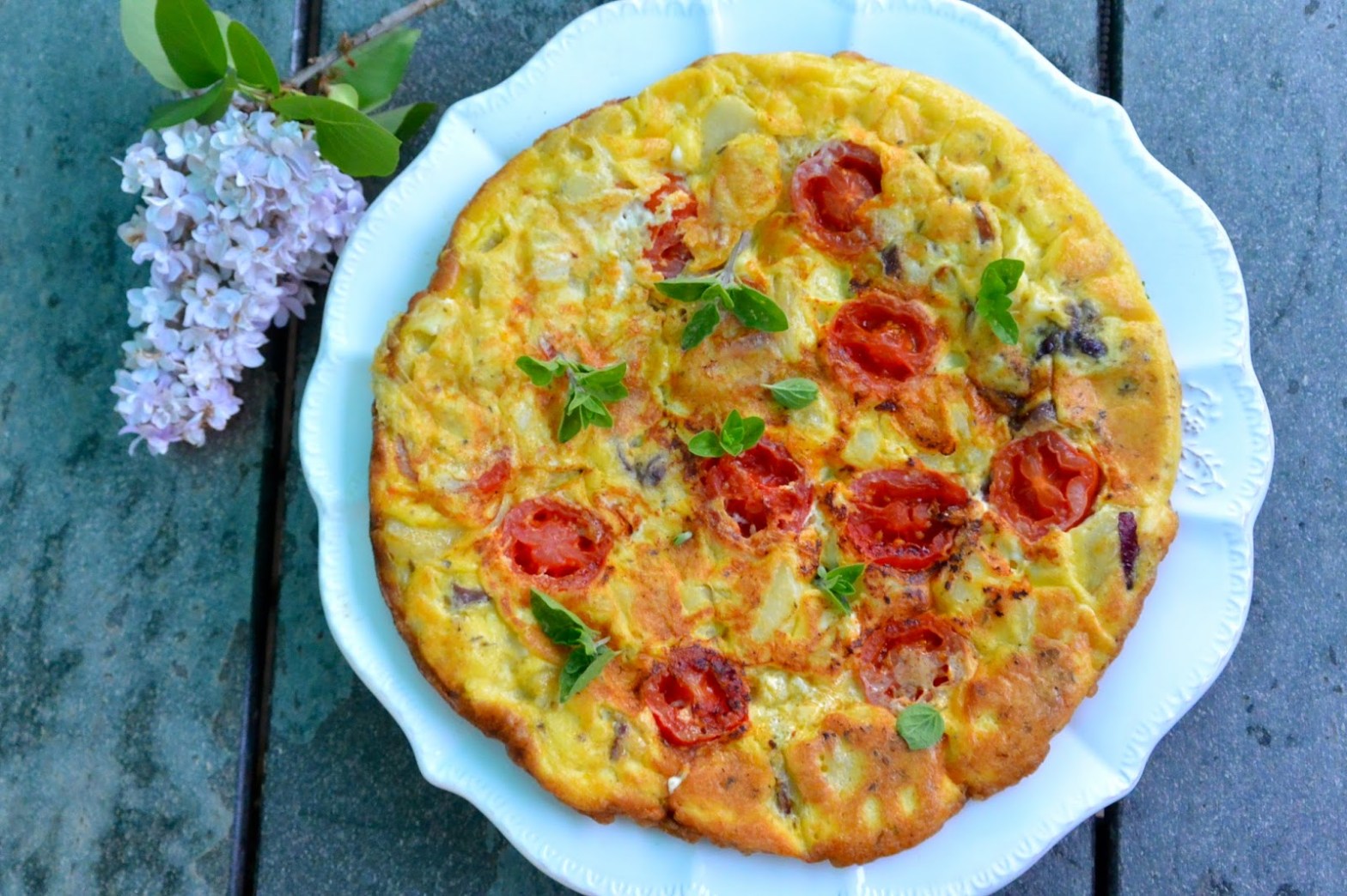 Frittata con pomodorini, feta e patate all’origano fresco