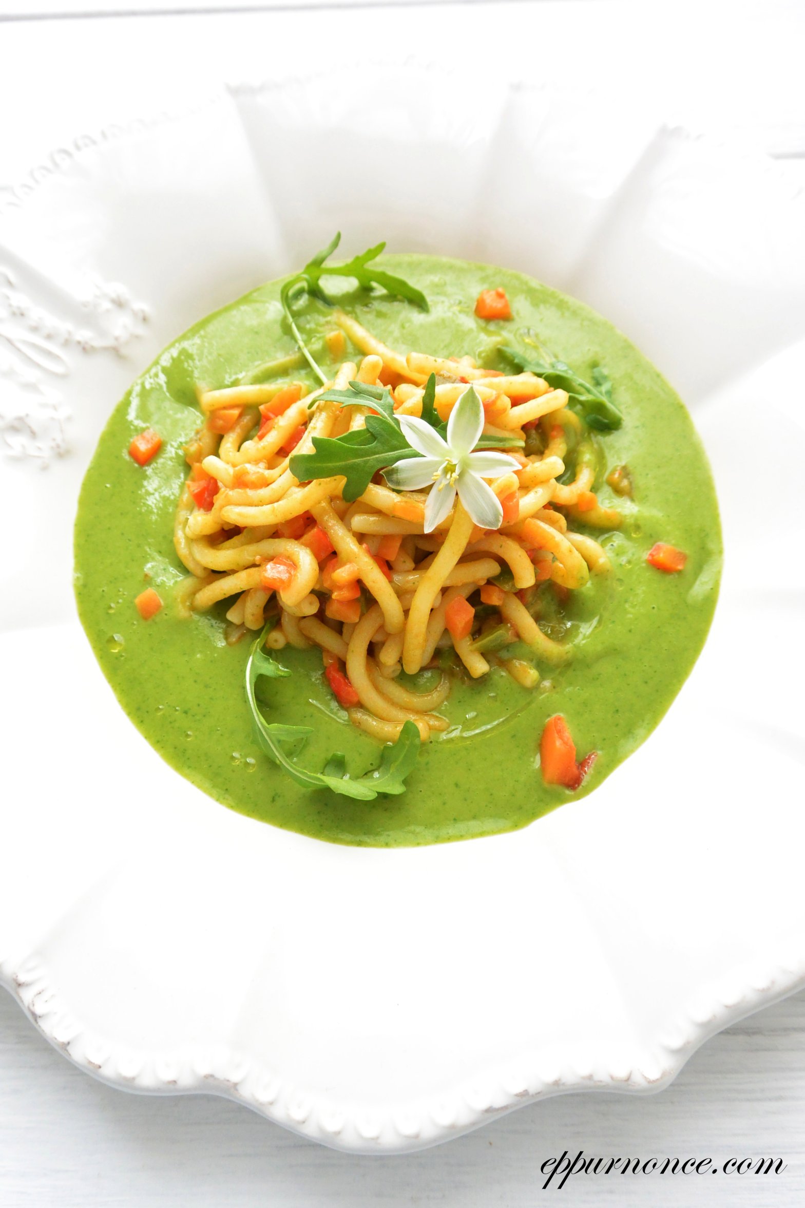 Gramigna con crema di rucola e verdure